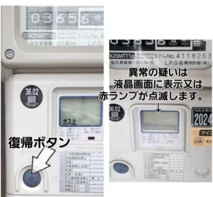 ⑤再度ガスメーターを確認して、赤ランプが消えていればガスが使えます。