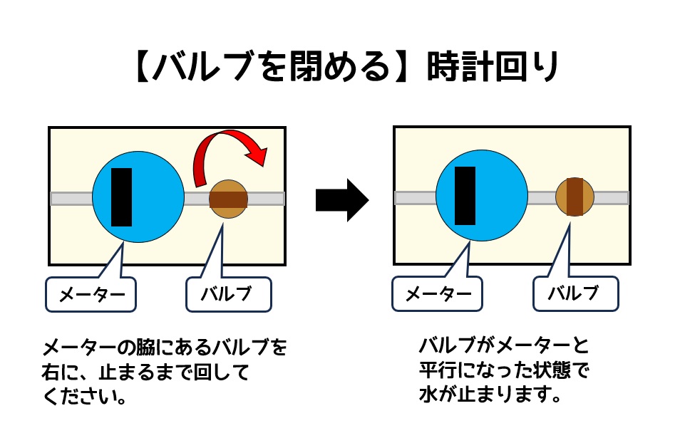 その場合は、水道の元栓(止水栓)を閉めて水を止めてください。